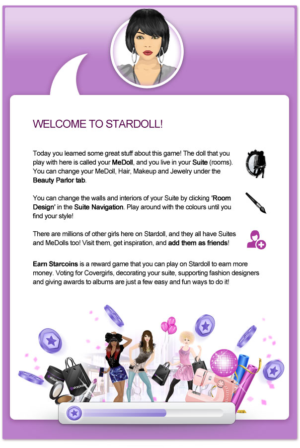 Olá meus amores vim trazer uma curiosidade de uma mensagem quando fazemos uma Conta no Stardoll aparece uma mensagem em inglês e depois em português muda enúmeras coisas mais e parecido: